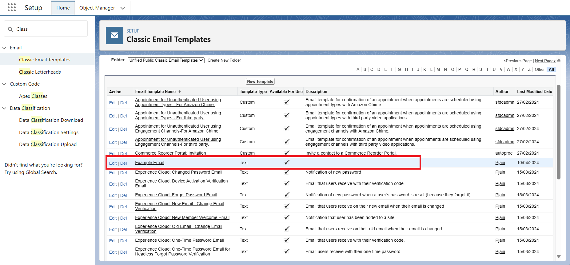 - Go to Classic Email Templates in Salesforce.
