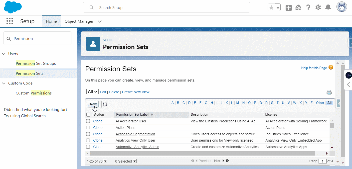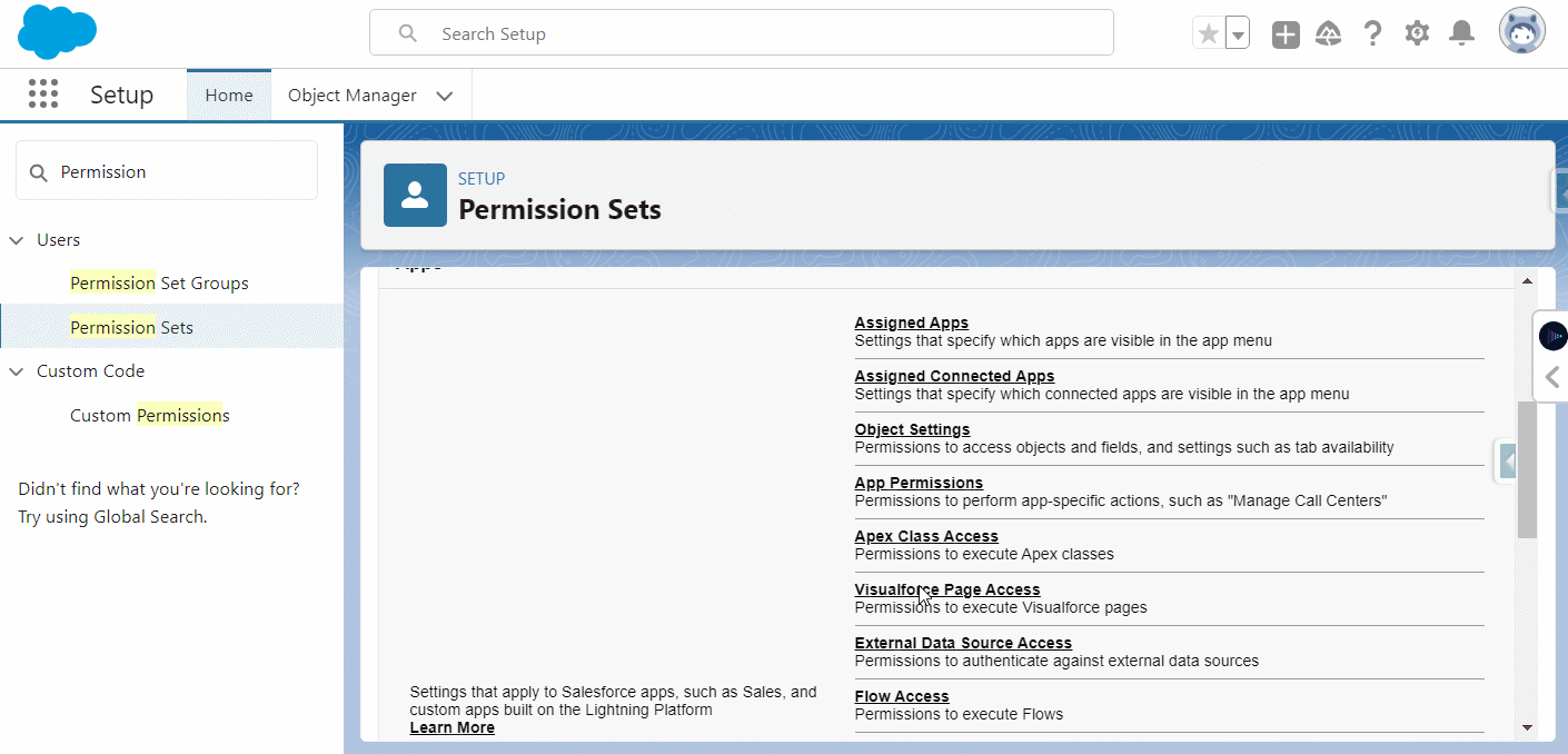 - From Setup -> Enter Permission Sets -> Click Permission Sets.