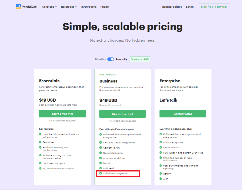 Pricing: Salesforce Integration plan starts from $49 per month.