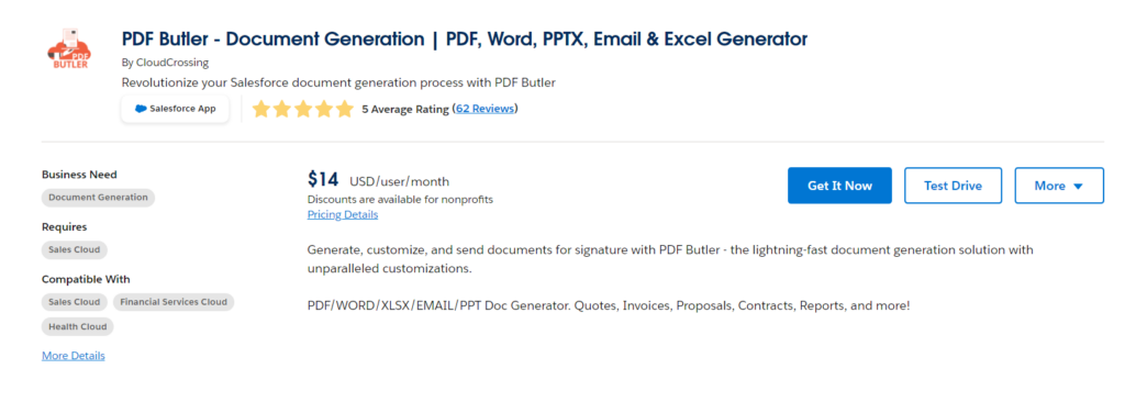 - Variety of Tools: Salesforce’s AppExchange offers a multitude of third-party document generation tools, each bringing its unique set of features to cater to diverse requirements.