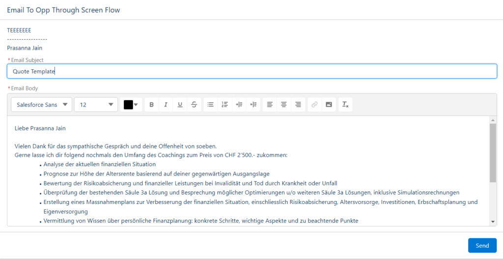 When establishing an email in Salesforce, end users may utilise them directly. Users may choose their preferred template by clicking the insert, create, or update template option located at the bottom of the email screen.