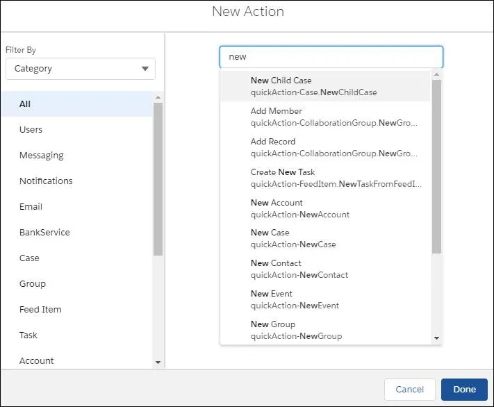 - Post to Chatter, Log a call, Task, and Event, etc.