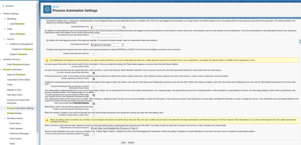 - Above setting can be found in Setup->Process Automation Setting.