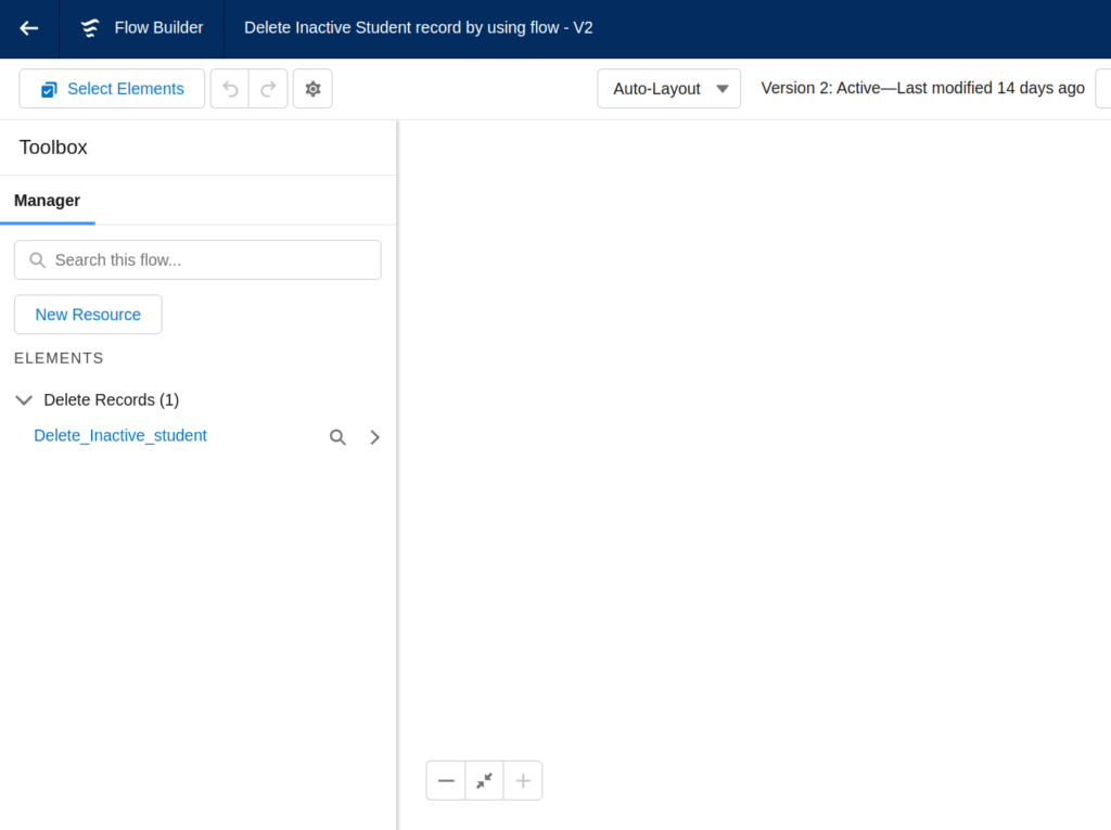 In the below image, You can see the Manager tab that contains the existing elements and New resources of the Flow (This is from an Auto-Launched Flow).