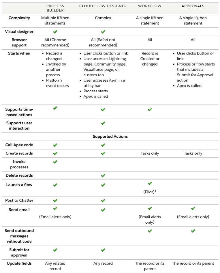 Comparison Between Flow, Process Builder & Workflow